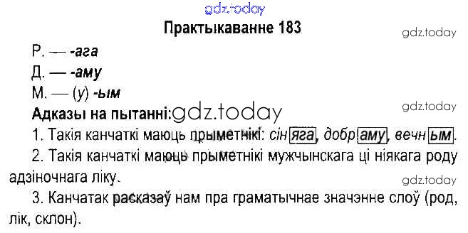 Ответы к Рашальнік да часткі 2. Практыкаванні 183 Учебнику по Белорусскому языку для 5 класса Красней, Несцяровіч Национальный институт образования 2014