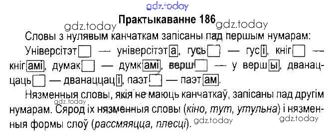 На страницах сайта gdz.today вы найдете учебный и вспомогательный материал, направленный на улучшения знаний школьной программы. ГДЗ - онлайн мир знаний Рашальнік да часткі 2. Практыкаванні 186 Учебнику по Белорусскому языку для 5 класса Красней, Несцяровіч Национальный институт образования 2014