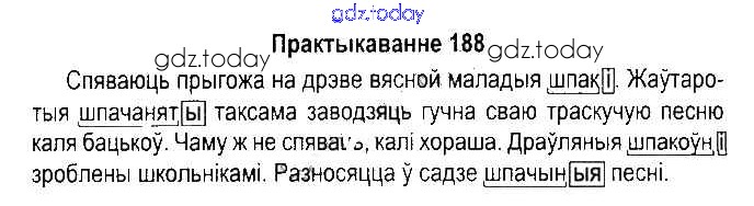 На страницах сайта gdz.today вы найдете учебный и вспомогательный материал, направленный на улучшения знаний школьной программы. ГДЗ - онлайн мир знаний Рашальнік да часткі 2. Практыкаванні 188 Учебнику по Белорусскому языку для 5 класса Красней, Несцяровіч Национальный институт образования 2014