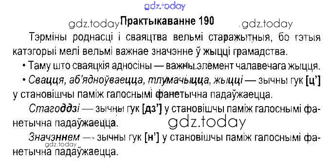 На страницах сайта gdz.today вы найдете учебный и вспомогательный материал, направленный на улучшения знаний школьной программы. ГДЗ - онлайн мир знаний Рашальнік да часткі 2. Практыкаванні 190 Учебнику по Белорусскому языку для 5 класса Красней, Несцяровіч Национальный институт образования 2014