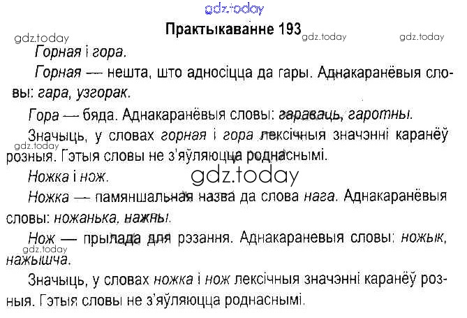Ответы к Рашальнік да часткі 2. Практыкаванні 193 Учебнику по Белорусскому языку для 5 класса Красней, Несцяровіч Национальный институт образования 2014