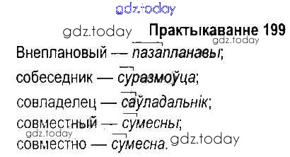 На страницах сайта gdz.today вы найдете учебный и вспомогательный материал, направленный на улучшения знаний школьной программы. ГДЗ - онлайн мир знаний Рашальнік да часткі 2. Практыкаванні 199 Учебнику по Белорусскому языку для 5 класса Красней, Несцяровіч Национальный институт образования 2014