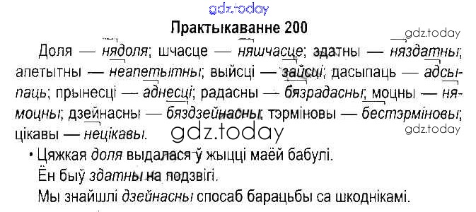 На страницах сайта gdz.today вы найдете учебный и вспомогательный материал, направленный на улучшения знаний школьной программы. ГДЗ - онлайн мир знаний Рашальнік да часткі 2. Практыкаванні 200 Учебнику по Белорусскому языку для 5 класса Красней, Несцяровіч Национальный институт образования 2014