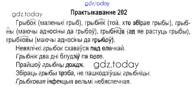 На страницах сайта gdz.today вы найдете учебный и вспомогательный материал, направленный на улучшения знаний школьной программы. ГДЗ - онлайн мир знаний Рашальнік да часткі 2. Практыкаванні 202 Учебнику по Белорусскому языку для 5 класса Красней, Несцяровіч Национальный институт образования 2014
