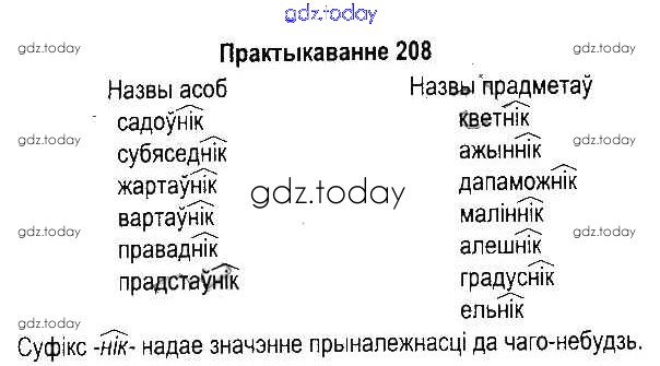На страницах сайта gdz.today вы найдете учебный и вспомогательный материал, направленный на улучшения знаний школьной программы. ГДЗ - онлайн мир знаний Рашальнік да часткі 2. Практыкаванні 208 Учебнику по Белорусскому языку для 5 класса Красней, Несцяровіч Национальный институт образования 2014