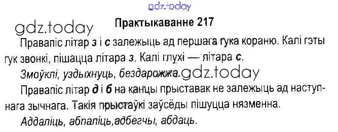На страницах сайта gdz.today вы найдете учебный и вспомогательный материал, направленный на улучшения знаний школьной программы. ГДЗ - онлайн мир знаний Рашальнік да часткі 2. Практыкаванні 217 Учебнику по Белорусскому языку для 5 класса Красней, Несцяровіч Национальный институт образования 2014