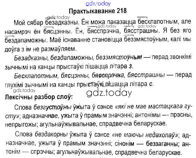 На страницах сайта gdz.today вы найдете учебный и вспомогательный материал, направленный на улучшения знаний школьной программы. ГДЗ - онлайн мир знаний Рашальнік да часткі 2. Практыкаванні 218 Учебнику по Белорусскому языку для 5 класса Красней, Несцяровіч Национальный институт образования 2014