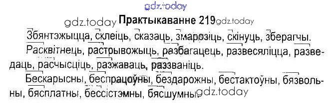 На страницах сайта gdz.today вы найдете учебный и вспомогательный материал, направленный на улучшения знаний школьной программы. ГДЗ - онлайн мир знаний Рашальнік да часткі 2. Практыкаванні 219 Учебнику по Белорусскому языку для 5 класса Красней, Несцяровіч Национальный институт образования 2014