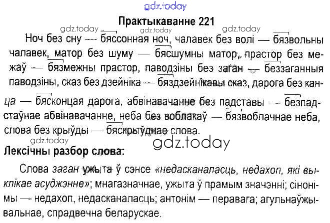На страницах сайта gdz.today вы найдете учебный и вспомогательный материал, направленный на улучшения знаний школьной программы. ГДЗ - онлайн мир знаний Рашальнік да часткі 2. Практыкаванні 221 Учебнику по Белорусскому языку для 5 класса Красней, Несцяровіч Национальный институт образования 2014