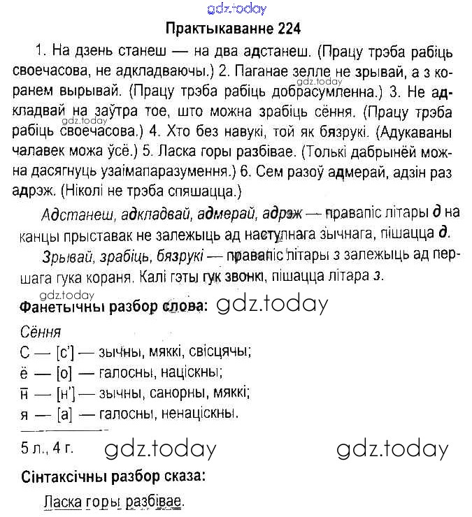 На страницах сайта gdz.today вы найдете учебный и вспомогательный материал, направленный на улучшения знаний школьной программы. ГДЗ - онлайн мир знаний Рашальнік да часткі 2. Практыкаванні 224 Учебнику по Белорусскому языку для 5 класса Красней, Несцяровіч Национальный институт образования 2014