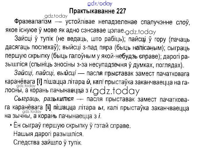 На страницах сайта gdz.today вы найдете учебный и вспомогательный материал, направленный на улучшения знаний школьной программы. ГДЗ - онлайн мир знаний Рашальнік да часткі 2. Практыкаванні 227 Учебнику по Белорусскому языку для 5 класса Красней, Несцяровіч Национальный институт образования 2014