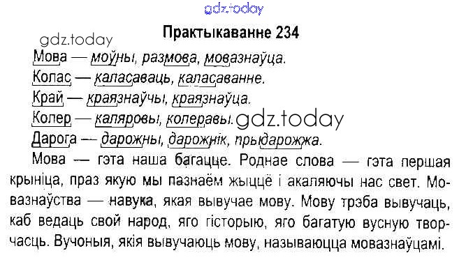 На страницах сайта gdz.today вы найдете учебный и вспомогательный материал, направленный на улучшения знаний школьной программы. ГДЗ - онлайн мир знаний Рашальнік да часткі 2. Практыкаванні 234 Учебнику по Белорусскому языку для 5 класса Красней, Несцяровіч Национальный институт образования 2014