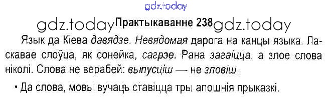 На страницах сайта gdz.today вы найдете учебный и вспомогательный материал, направленный на улучшения знаний школьной программы. ГДЗ - онлайн мир знаний Рашальнік да часткі 2. Практыкаванні 238 Учебнику по Белорусскому языку для 5 класса Красней, Несцяровіч Национальный институт образования 2014