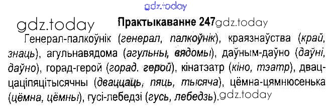 На страницах сайта gdz.today вы найдете учебный и вспомогательный материал, направленный на улучшения знаний школьной программы. ГДЗ - онлайн мир знаний Рашальнік да часткі 2. Практыкаванні 247 Учебнику по Белорусскому языку для 5 класса Красней, Несцяровіч Национальный институт образования 2014