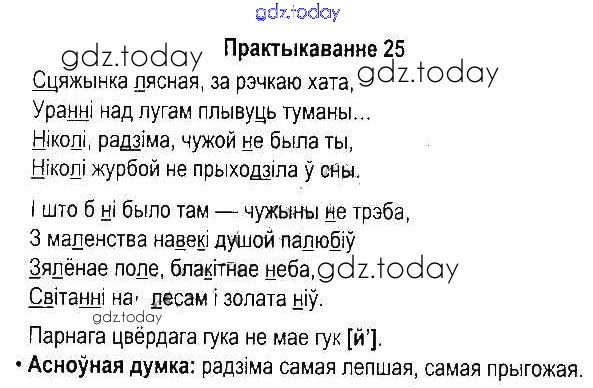 На страницах сайта gdz.today вы найдете учебный и вспомогательный материал, направленный на улучшения знаний школьной программы. ГДЗ - онлайн мир знаний Рашальнік да часткі 2. Практыкаванні 25 Учебнику по Белорусскому языку для 5 класса Красней, Несцяровіч Национальный институт образования 2014