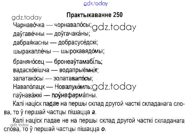 На страницах сайта gdz.today вы найдете учебный и вспомогательный материал, направленный на улучшения знаний школьной программы. ГДЗ - онлайн мир знаний Рашальнік да часткі 2. Практыкаванні 250 Учебнику по Белорусскому языку для 5 класса Красней, Несцяровіч Национальный институт образования 2014