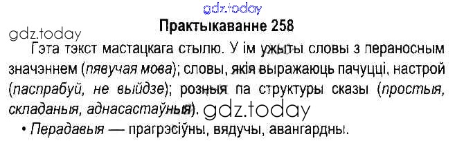На страницах сайта gdz.today вы найдете учебный и вспомогательный материал, направленный на улучшения знаний школьной программы. ГДЗ - онлайн мир знаний Рашальнік да часткі 2. Практыкаванні 258 Учебнику по Белорусскому языку для 5 класса Красней, Несцяровіч Национальный институт образования 2014