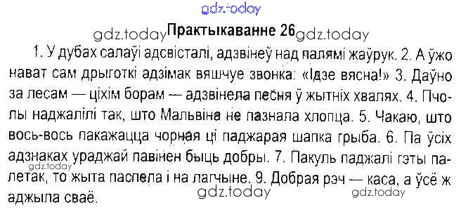 На страницах сайта gdz.today вы найдете учебный и вспомогательный материал, направленный на улучшения знаний школьной программы. ГДЗ - онлайн мир знаний Рашальнік да часткі 2. Практыкаванні 26 Учебнику по Белорусскому языку для 5 класса Красней, Несцяровіч Национальный институт образования 2014