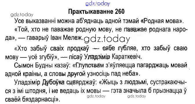 На страницах сайта gdz.today вы найдете учебный и вспомогательный материал, направленный на улучшения знаний школьной программы. ГДЗ - онлайн мир знаний Рашальнік да часткі 2. Практыкаванні 260 Учебнику по Белорусскому языку для 5 класса Красней, Несцяровіч Национальный институт образования 2014