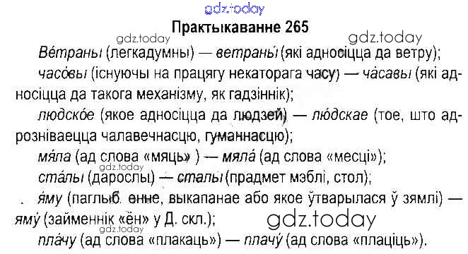 Ответы к Рашальнік да часткі 2. Практыкаванні 265 Учебнику по Белорусскому языку для 5 класса Красней, Несцяровіч Национальный институт образования 2014