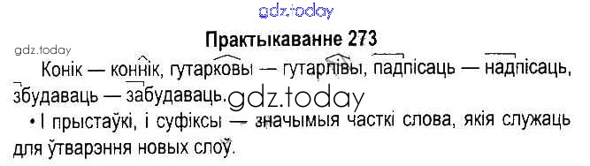 На страницах сайта gdz.today вы найдете учебный и вспомогательный материал, направленный на улучшения знаний школьной программы. ГДЗ - онлайн мир знаний Рашальнік да часткі 2. Практыкаванні 273 Учебнику по Белорусскому языку для 5 класса Красней, Несцяровіч Национальный институт образования 2014