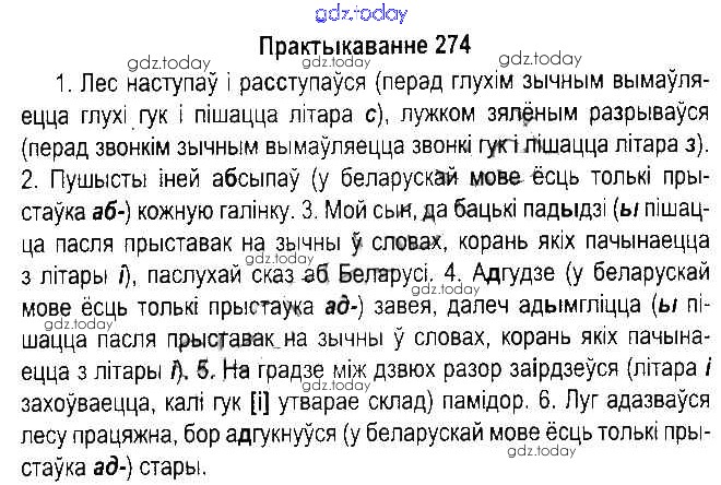 На страницах сайта gdz.today вы найдете учебный и вспомогательный материал, направленный на улучшения знаний школьной программы. ГДЗ - онлайн мир знаний Рашальнік да часткі 2. Практыкаванні 274 Учебнику по Белорусскому языку для 5 класса Красней, Несцяровіч Национальный институт образования 2014