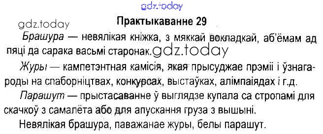 На страницах сайта gdz.today вы найдете учебный и вспомогательный материал, направленный на улучшения знаний школьной программы. ГДЗ - онлайн мир знаний Рашальнік да часткі 2. Практыкаванні 29 Учебнику по Белорусскому языку для 5 класса Красней, Несцяровіч Национальный институт образования 2014