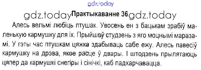 На страницах сайта gdz.today вы найдете учебный и вспомогательный материал, направленный на улучшения знаний школьной программы. ГДЗ - онлайн мир знаний Рашальнік да часткі 2. Практыкаванні 36 Учебнику по Белорусскому языку для 5 класса Красней, Несцяровіч Национальный институт образования 2014