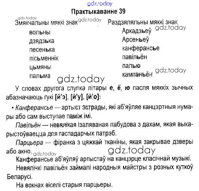 На страницах сайта gdz.today вы найдете учебный и вспомогательный материал, направленный на улучшения знаний школьной программы. ГДЗ - онлайн мир знаний Рашальнік да часткі 2. Практыкаванні 39 Учебнику по Белорусскому языку для 5 класса Красней, Несцяровіч Национальный институт образования 2014