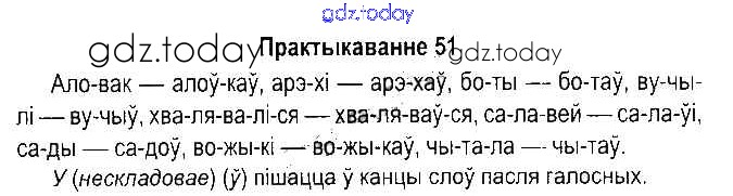 На страницах сайта gdz.today вы найдете учебный и вспомогательный материал, направленный на улучшения знаний школьной программы. ГДЗ - онлайн мир знаний Рашальнік да часткі 2. Практыкаванні 51 Учебнику по Белорусскому языку для 5 класса Красней, Несцяровіч Национальный институт образования 2014