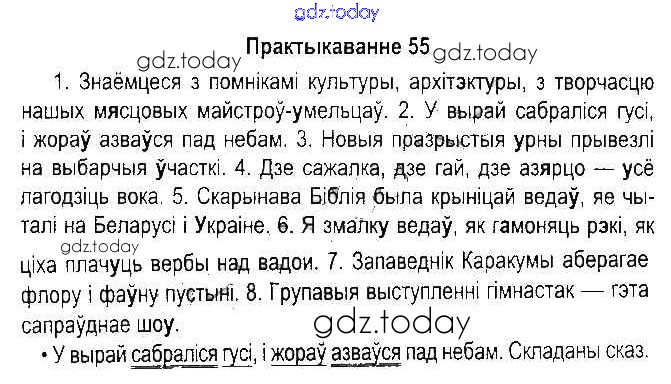 На страницах сайта gdz.today вы найдете учебный и вспомогательный материал, направленный на улучшения знаний школьной программы. ГДЗ - онлайн мир знаний Рашальнік да часткі 2. Практыкаванні 55 Учебнику по Белорусскому языку для 5 класса Красней, Несцяровіч Национальный институт образования 2014