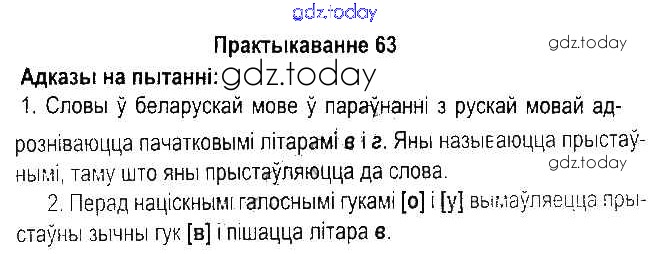 Ответы к Рашальнік да часткі 2. Практыкаванні 63 Учебнику по Белорусскому языку для 5 класса Красней, Несцяровіч Национальный институт образования 2014
