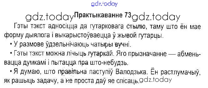 На страницах сайта gdz.today вы найдете учебный и вспомогательный материал, направленный на улучшения знаний школьной программы. ГДЗ - онлайн мир знаний Рашальнік да часткі 2. Практыкаванні 73 Учебнику по Белорусскому языку для 5 класса Красней, Несцяровіч Национальный институт образования 2014
