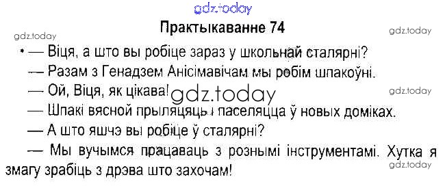 На страницах сайта gdz.today вы найдете учебный и вспомогательный материал, направленный на улучшения знаний школьной программы. ГДЗ - онлайн мир знаний Рашальнік да часткі 2. Практыкаванні 74 Учебнику по Белорусскому языку для 5 класса Красней, Несцяровіч Национальный институт образования 2014