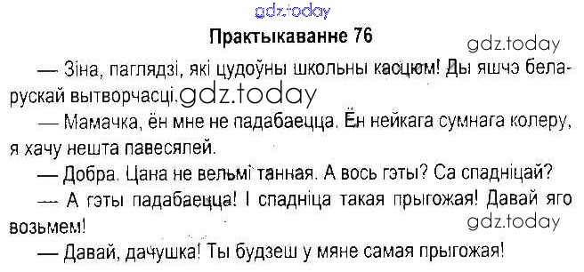 На страницах сайта gdz.today вы найдете учебный и вспомогательный материал, направленный на улучшения знаний школьной программы. ГДЗ - онлайн мир знаний Рашальнік да часткі 2. Практыкаванні 76 Учебнику по Белорусскому языку для 5 класса Красней, Несцяровіч Национальный институт образования 2014