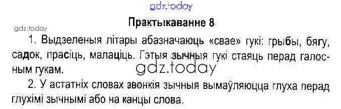 На страницах сайта gdz.today вы найдете учебный и вспомогательный материал, направленный на улучшения знаний школьной программы. ГДЗ - онлайн мир знаний Рашальнік да часткі 2. Практыкаванні 8 Учебнику по Белорусскому языку для 5 класса Красней, Несцяровіч Национальный институт образования 2014