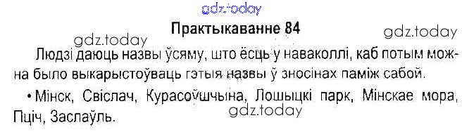 На страницах сайта gdz.today вы найдете учебный и вспомогательный материал, направленный на улучшения знаний школьной программы. ГДЗ - онлайн мир знаний Рашальнік да часткі 2. Практыкаванні 84 Учебнику по Белорусскому языку для 5 класса Красней, Несцяровіч Национальный институт образования 2014
