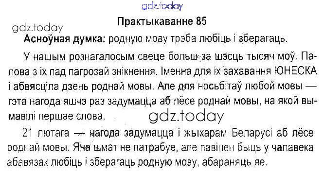 На страницах сайта gdz.today вы найдете учебный и вспомогательный материал, направленный на улучшения знаний школьной программы. ГДЗ - онлайн мир знаний Рашальнік да часткі 2. Практыкаванні 85 Учебнику по Белорусскому языку для 5 класса Красней, Несцяровіч Национальный институт образования 2014