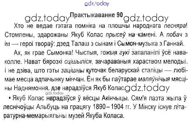 На страницах сайта gdz.today вы найдете учебный и вспомогательный материал, направленный на улучшения знаний школьной программы. ГДЗ - онлайн мир знаний Рашальнік да часткі 2. Практыкаванні 90 Учебнику по Белорусскому языку для 5 класса Красней, Несцяровіч Национальный институт образования 2014