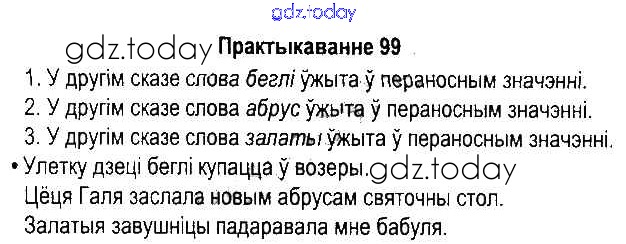 Ответы к Рашальнік да часткі 2. Практыкаванні 99 Учебнику по Белорусскому языку для 5 класса Красней, Несцяровіч Национальный институт образования 2014