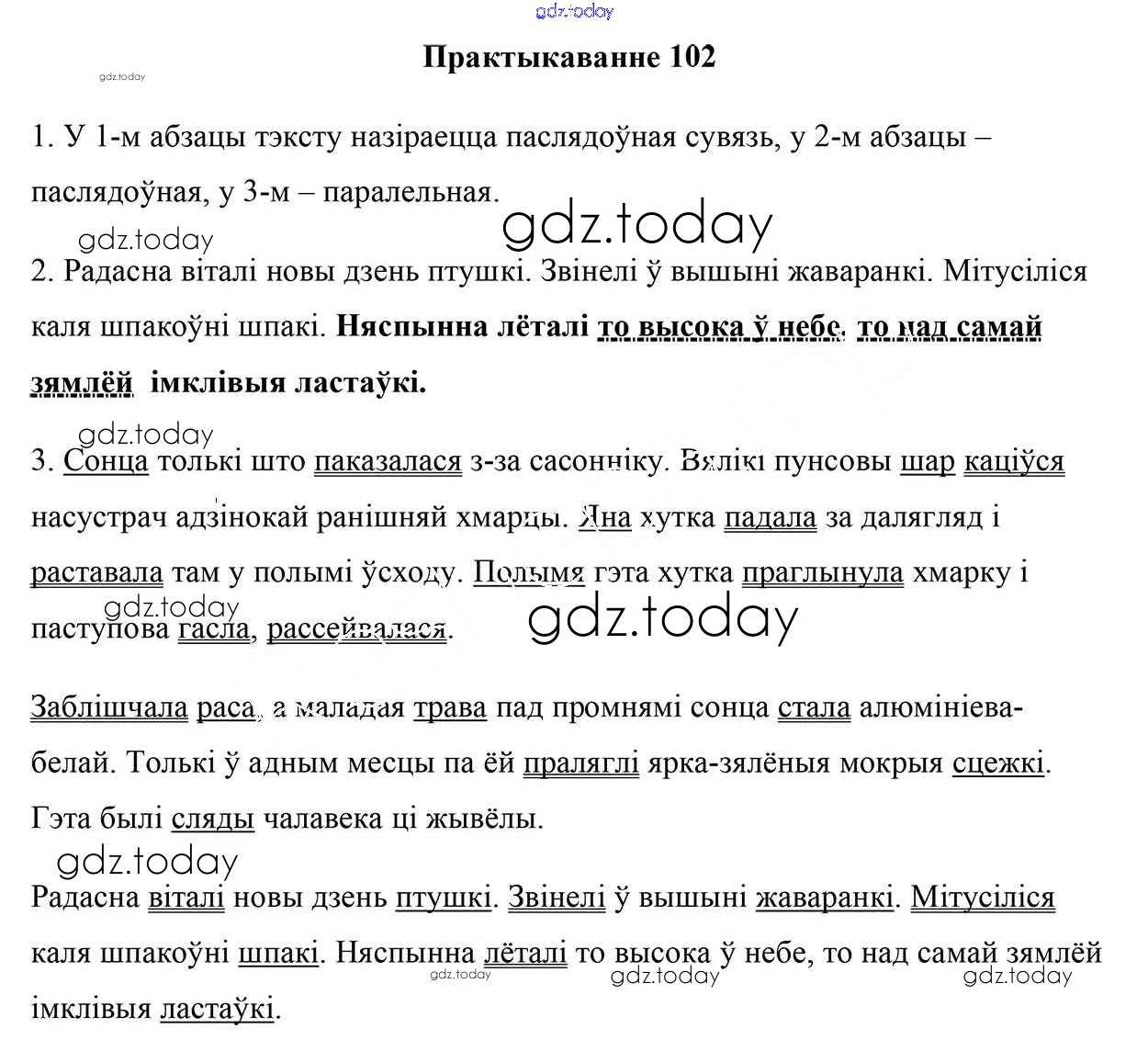 На страницах сайта gdz.today вы найдете учебный и вспомогательный материал, направленный на улучшения знаний школьной программы. ГДЗ - онлайн мир знаний Рашальнік да часткі 1. Практыкаванні 102 Учебнику по Белорусскому языку для 5 класса Валочка, Зелянко Национальный институт образования 2019