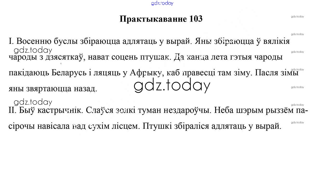 На страницах сайта gdz.today вы найдете учебный и вспомогательный материал, направленный на улучшения знаний школьной программы. ГДЗ - онлайн мир знаний Рашальнік да часткі 1. Практыкаванні 103 Учебнику по Белорусскому языку для 5 класса Валочка, Зелянко Национальный институт образования 2019