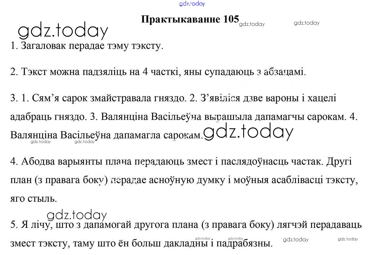 На страницах сайта gdz.today вы найдете учебный и вспомогательный материал, направленный на улучшения знаний школьной программы. ГДЗ - онлайн мир знаний Рашальнік да часткі 1. Практыкаванні 105 Учебнику по Белорусскому языку для 5 класса Валочка, Зелянко Национальный институт образования 2019
