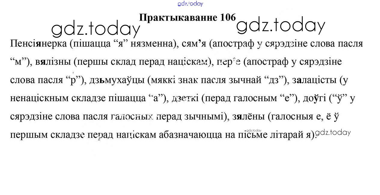 На страницах сайта gdz.today вы найдете учебный и вспомогательный материал, направленный на улучшения знаний школьной программы. ГДЗ - онлайн мир знаний Рашальнік да часткі 1. Практыкаванні 106 Учебнику по Белорусскому языку для 5 класса Валочка, Зелянко Национальный институт образования 2019
