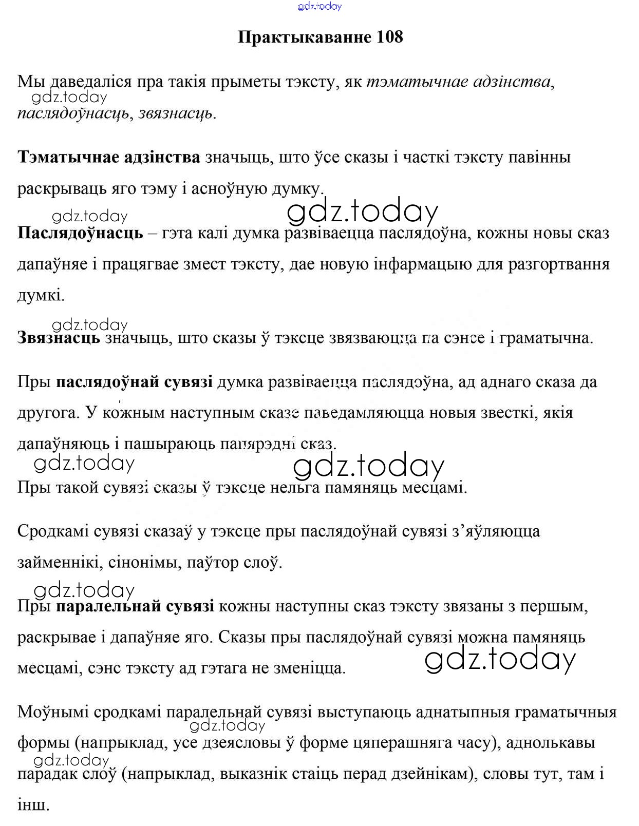 На страницах сайта gdz.today вы найдете учебный и вспомогательный материал, направленный на улучшения знаний школьной программы. ГДЗ - онлайн мир знаний Рашальнік да часткі 1. Практыкаванні 108 Учебнику по Белорусскому языку для 5 класса Валочка, Зелянко Национальный институт образования 2019