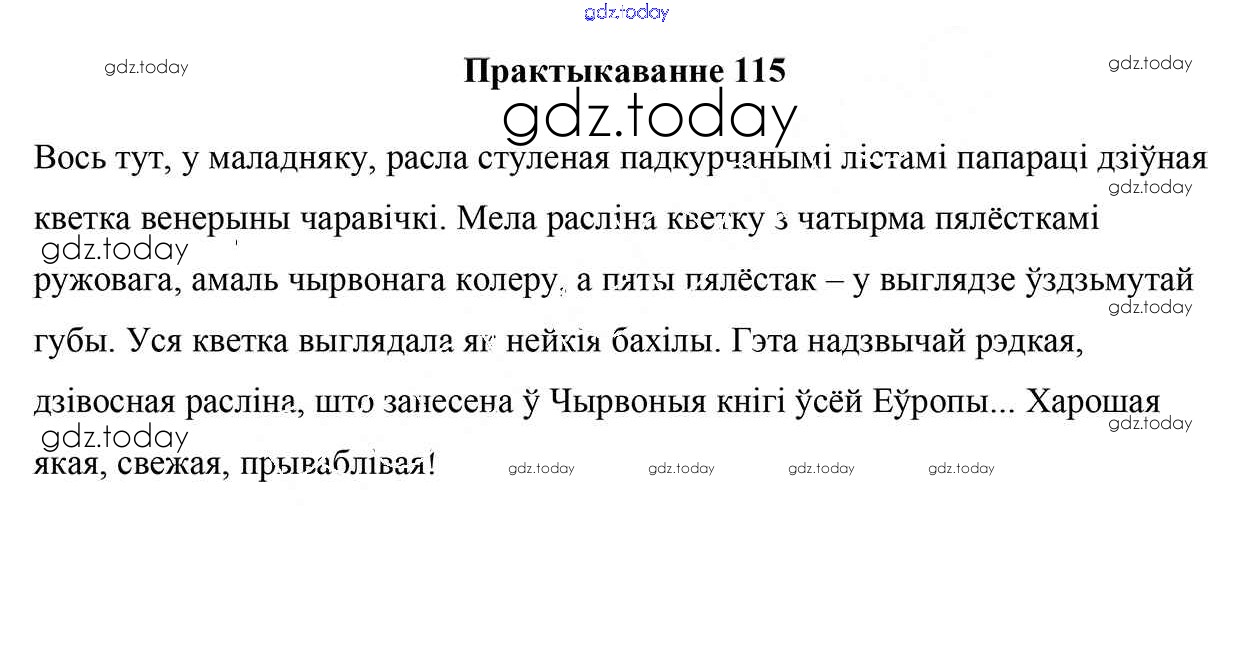 На страницах сайта gdz.today вы найдете учебный и вспомогательный материал, направленный на улучшения знаний школьной программы. ГДЗ - онлайн мир знаний Рашальнік да часткі 1. Практыкаванні 115 Учебнику по Белорусскому языку для 5 класса Валочка, Зелянко Национальный институт образования 2019