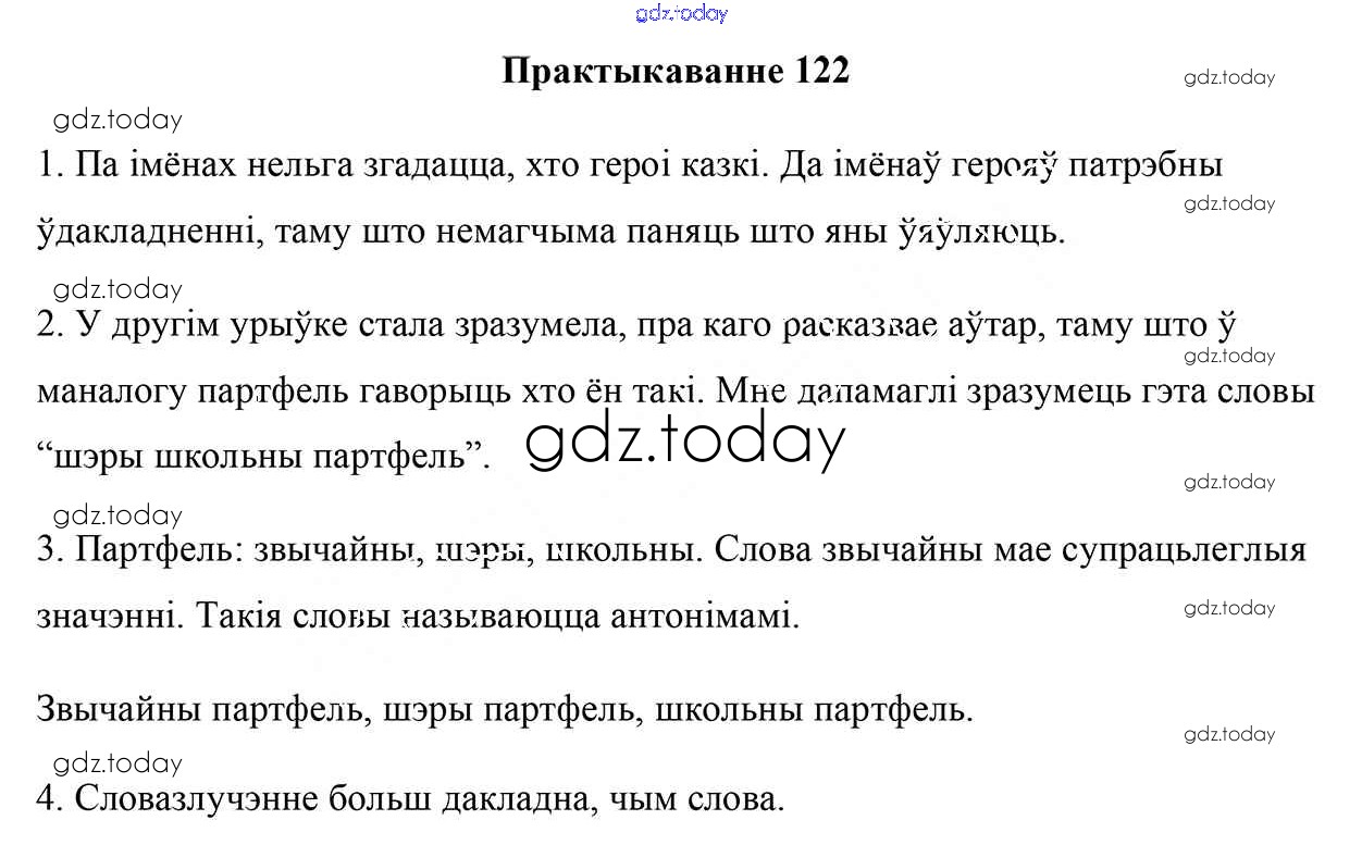 На страницах сайта gdz.today вы найдете учебный и вспомогательный материал, направленный на улучшения знаний школьной программы. ГДЗ - онлайн мир знаний Рашальнік да часткі 1. Практыкаванні 122 Учебнику по Белорусскому языку для 5 класса Валочка, Зелянко Национальный институт образования 2019