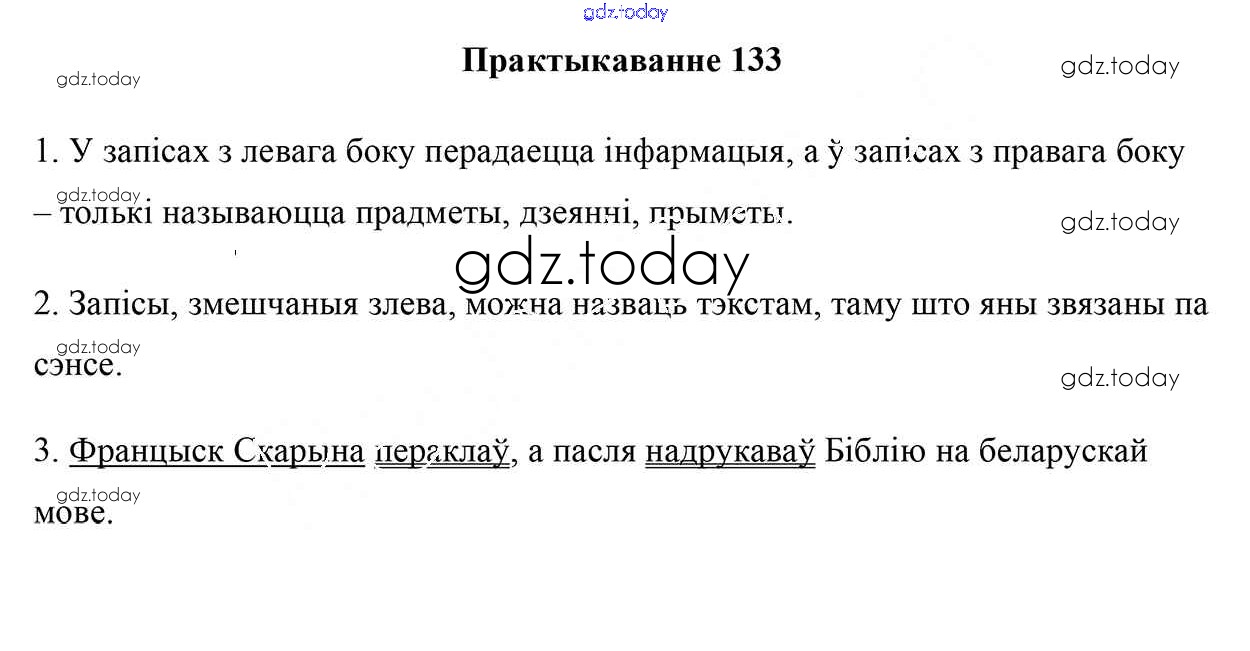 На страницах сайта gdz.today вы найдете учебный и вспомогательный материал, направленный на улучшения знаний школьной программы. ГДЗ - онлайн мир знаний Рашальнік да часткі 1. Практыкаванні 133 Учебнику по Белорусскому языку для 5 класса Валочка, Зелянко Национальный институт образования 2019