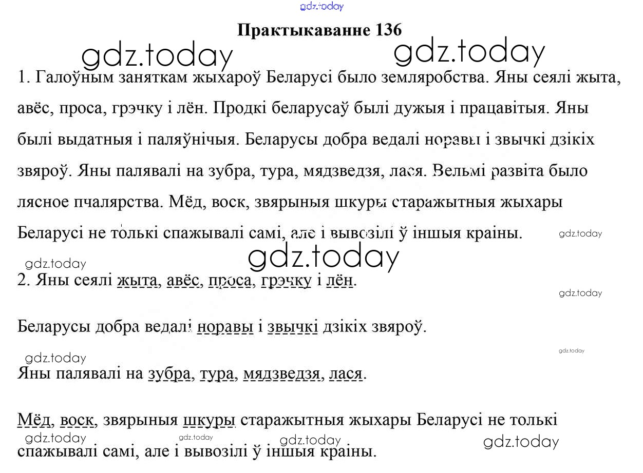 На страницах сайта gdz.today вы найдете учебный и вспомогательный материал, направленный на улучшения знаний школьной программы. ГДЗ - онлайн мир знаний Рашальнік да часткі 1. Практыкаванні 136 Учебнику по Белорусскому языку для 5 класса Валочка, Зелянко Национальный институт образования 2019