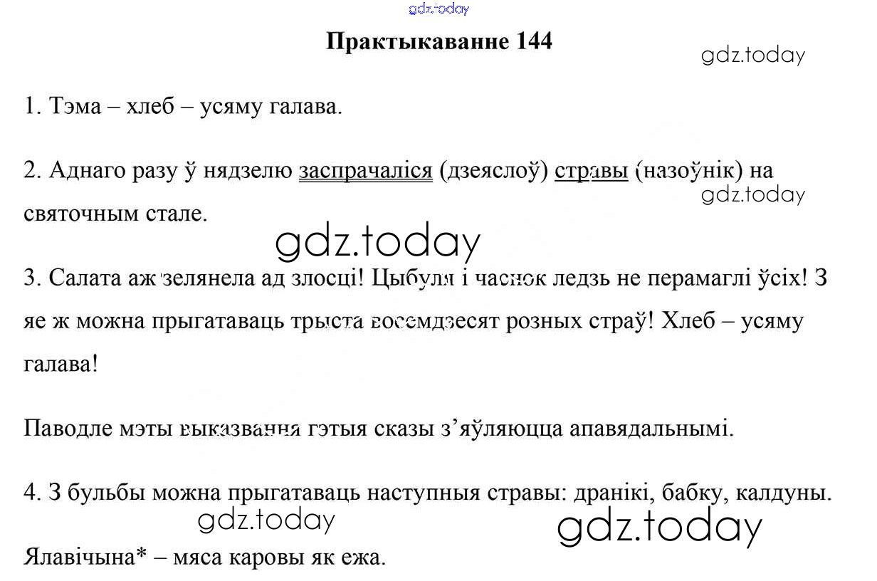 На страницах сайта gdz.today вы найдете учебный и вспомогательный материал, направленный на улучшения знаний школьной программы. ГДЗ - онлайн мир знаний Рашальнік да часткі 1. Практыкаванні 144 Учебнику по Белорусскому языку для 5 класса Валочка, Зелянко Национальный институт образования 2019